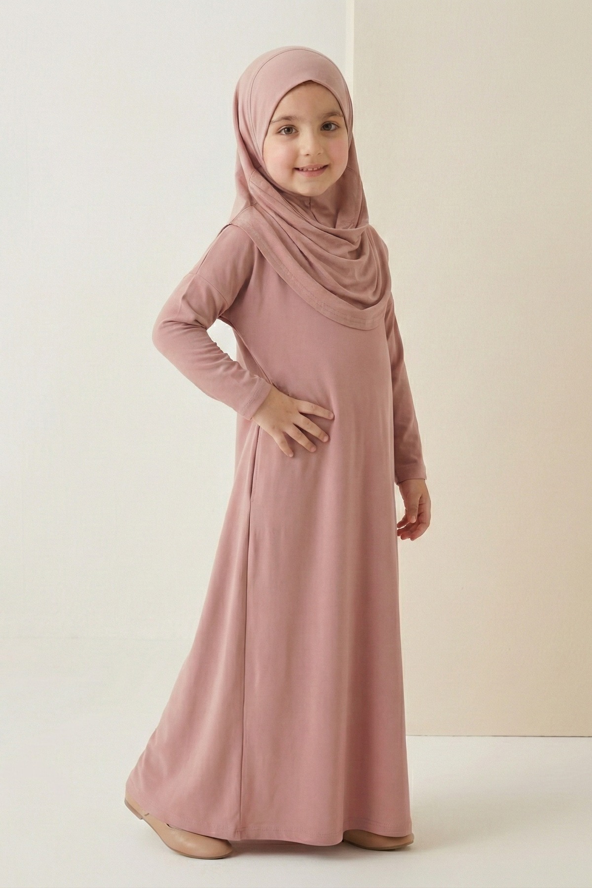 Pratik Başörtülü Kız Çocuk Namaz Elbisesi M00789 GÜL KURUSU, tesettür modasının en beğenilen parçalarından biri. Vücut hatlarını gizleyen rahat kesimi, nefes alan kumaşı ve özenli dikişleriyle fark yaratıyor. Günlük kullanımdan özel davetlere kadar her ortamda giyebilirsiniz. Mnk Baby&Kids kalite güvencesiyle sizlere sunulmaktadır.
