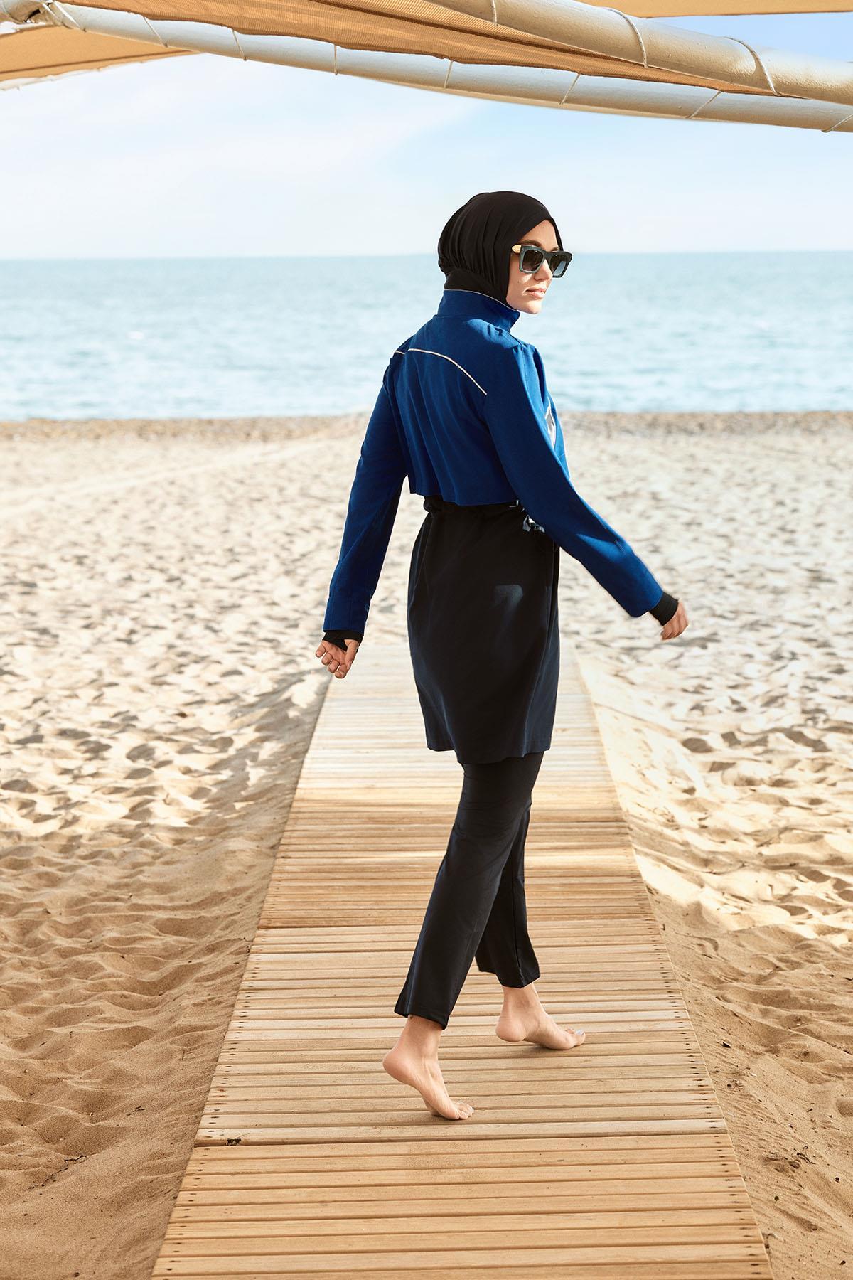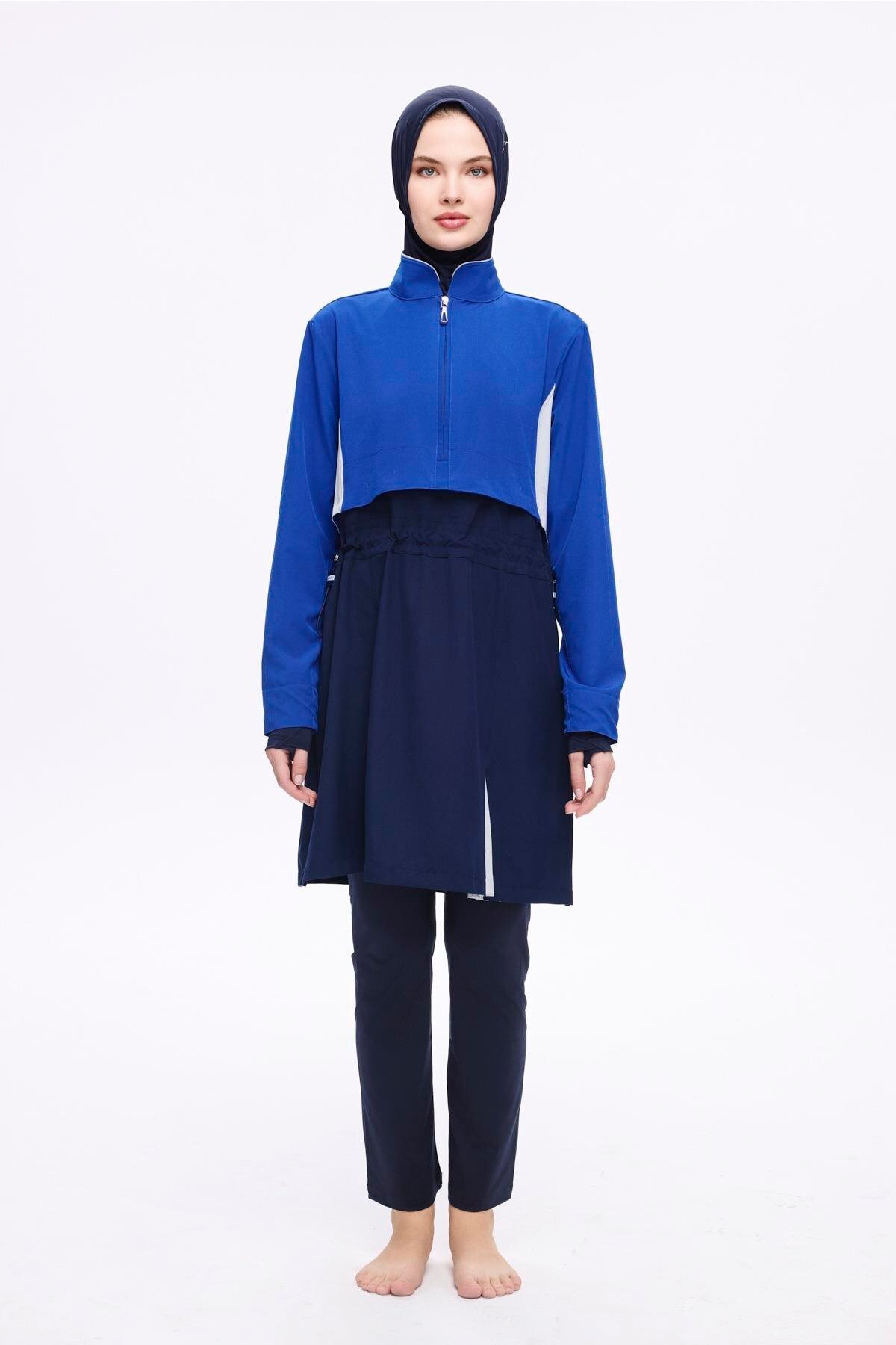 Saks Mavisi 5 Parça Jileli Tam Tesettür Mayo Takımı 5063, modern çizgileri ve şık detaylarıyla gardırobunuzun vazgeçilmezi olacak. Mevsimin en trend renklerinde sunulan bu ürün, farklı kombinlerle kullanılabilir. Kaliteli dikimi ve dayanıklı kumaşıyla uzun süre yeni görünümünü korur. Haşema kalite güvencesiyle sizlere sunulmaktadır.