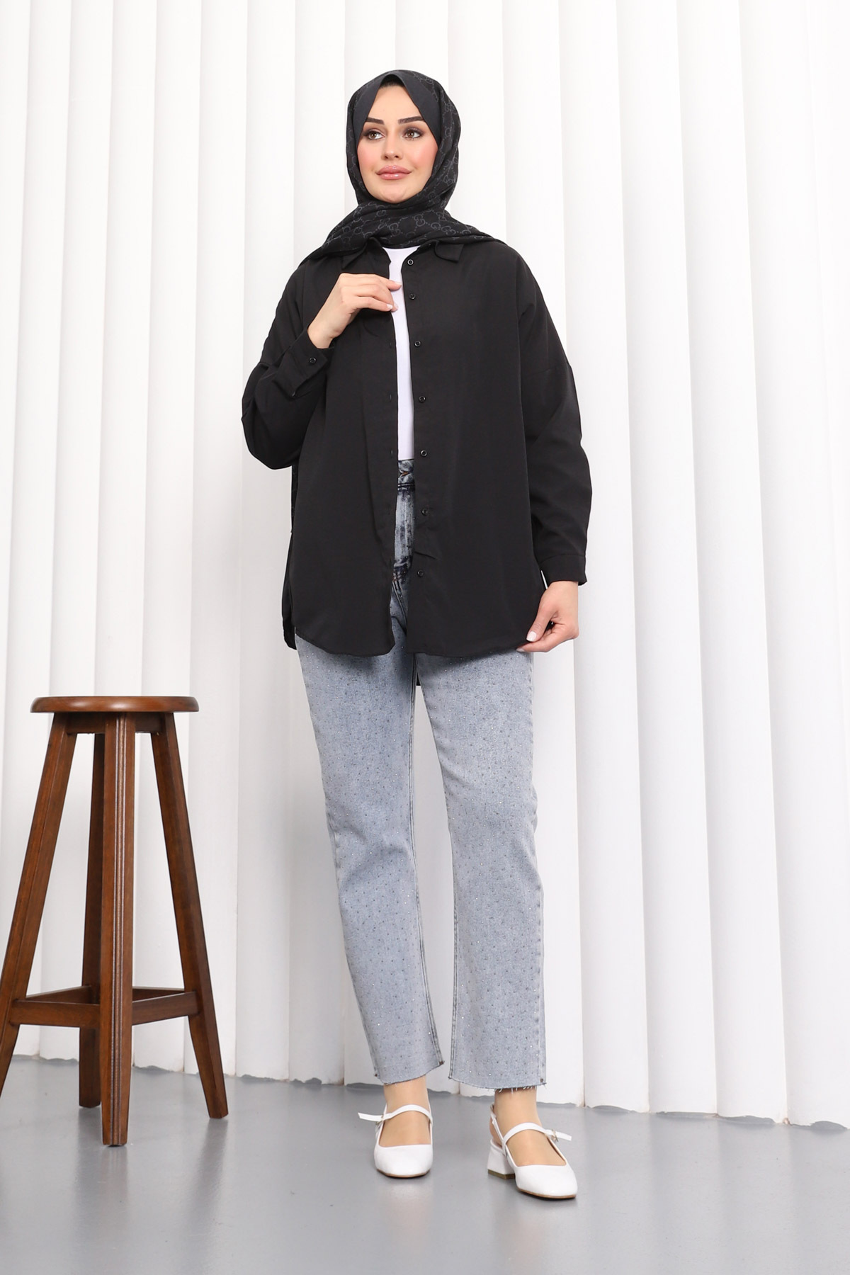 Siyah Düğmeli Salaş Terikoton Gömlek, tesettür modasının en beğenilen parçalarından biri. Vücut hatlarını gizleyen rahat kesimi, nefes alan kumaşı ve özenli dikişleriyle fark yaratıyor. Günlük kullanımdan özel davetlere kadar her ortamda giyebilirsiniz. İmajButik kalite güvencesiyle sizlere sunulmaktadır.