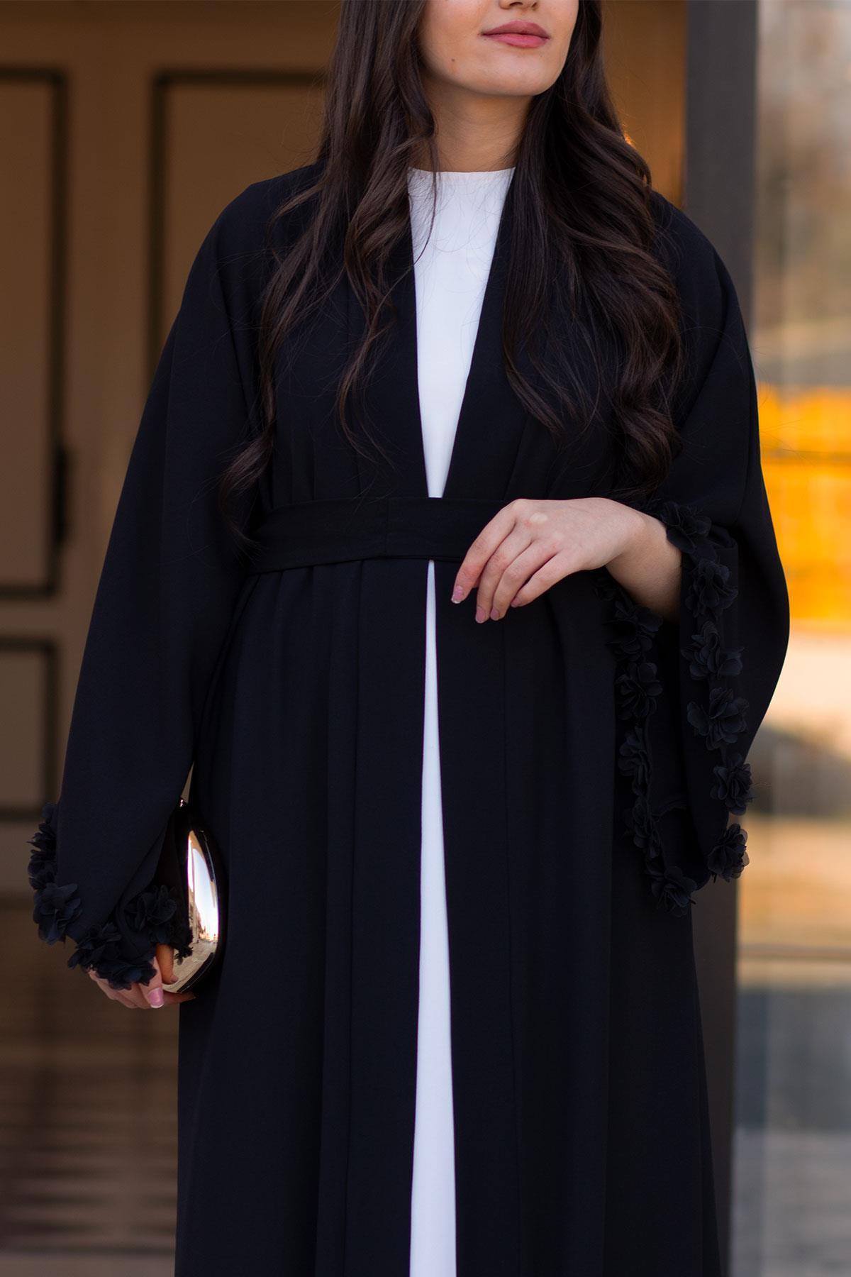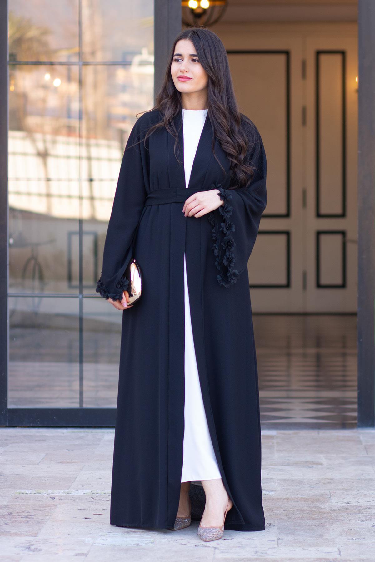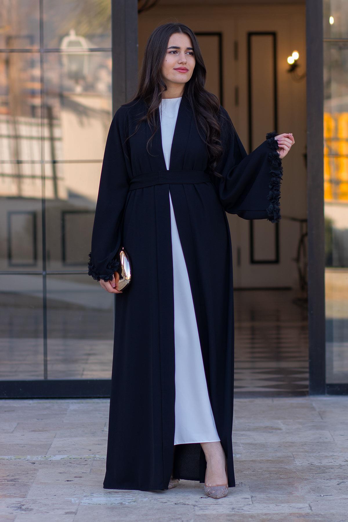 Siyah Kolu Çiçek Detaylı Zahra Abaya, zarif tasarımı ve kaliteli kumaşıyla günlük ve özel günlerinizde şıklığınızı tamamlayacak bir parça. Rahat kalıbı sayesinde gün boyu konforlu bir kullanım sunar. Tesettüre uygun kesimi ile her yaştan kadının tercih edebileceği şık bir model. MELEK ARAZ güvencesiyle sunulmaktadır.