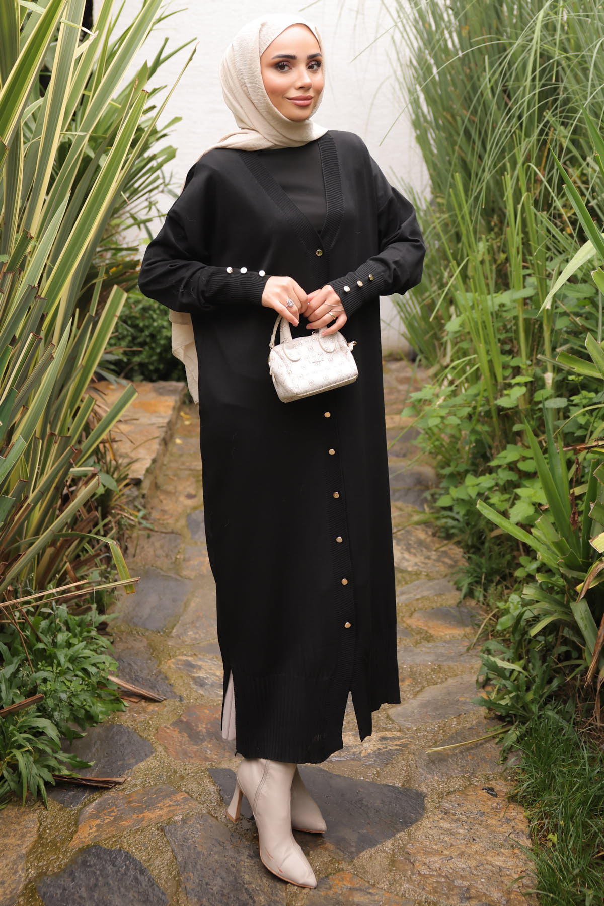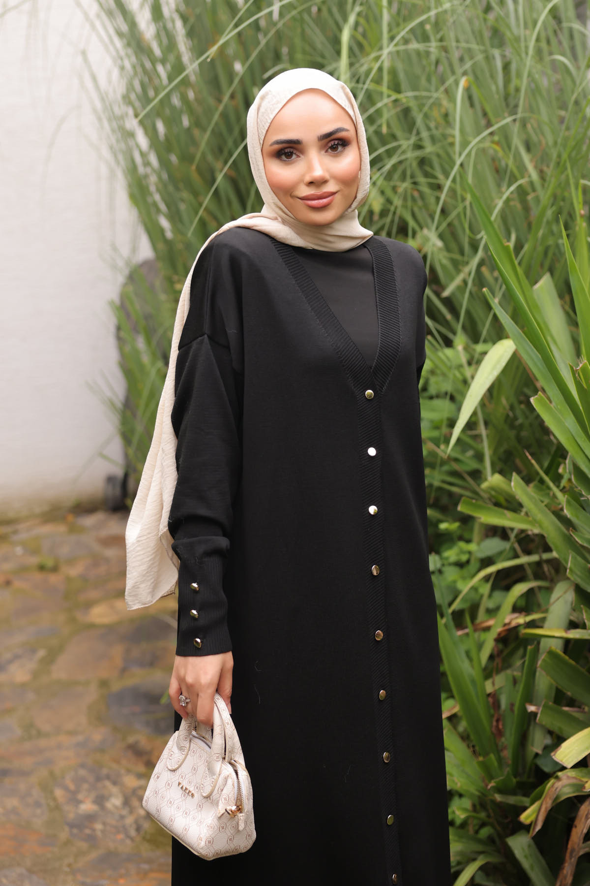 Siyah Soğuk İplik Triko Hırka, zarif tasarımı ve kaliteli kumaşıyla günlük ve özel günlerinizde şıklığınızı tamamlayacak bir parça. Rahat kalıbı sayesinde gün boyu konforlu bir kullanım sunar. Tesettüre uygun kesimi ile her yaştan kadının tercih edebileceği şık bir model. İmajButik güvencesiyle sunulmaktadır.
