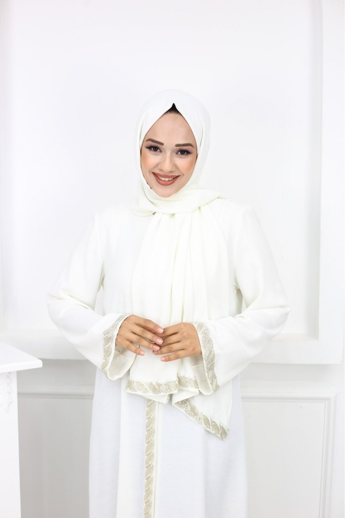 Sultan Taşlı Abaya Beyaz, özel dikim teknikleriyle üretilmiş, kalitesini her detayda hissedebileceğiniz bir tasarım. Nefes alan kumaş yapısıyla mevsim geçişlerinde ideal bir tercih. Zarif silueti ve ince işçiliğiyle fark yaratacaksınız. Elif Artar güvencesiyle sunulmaktadır.