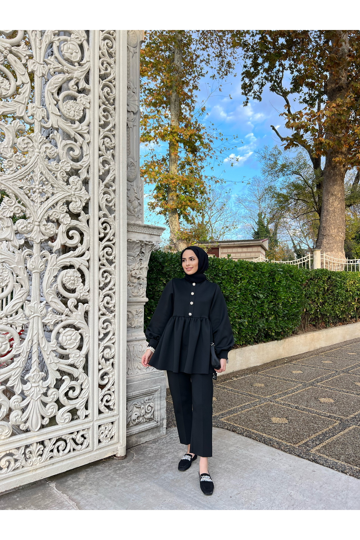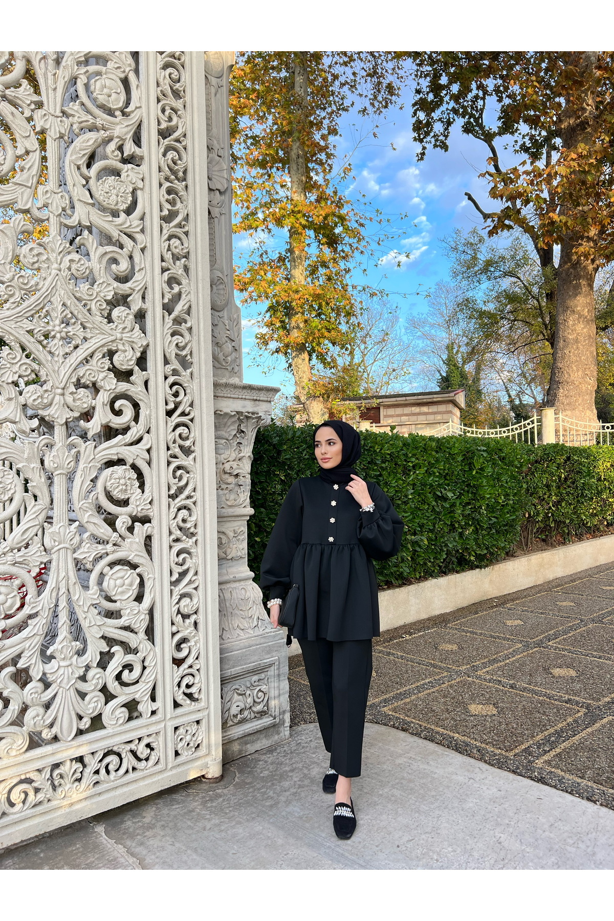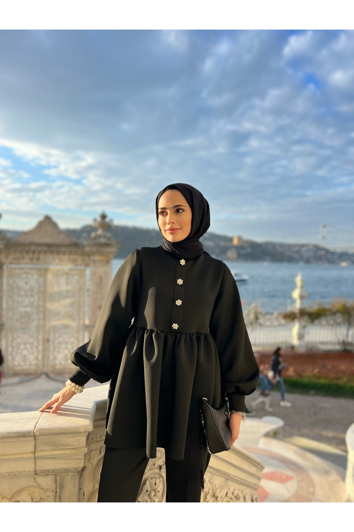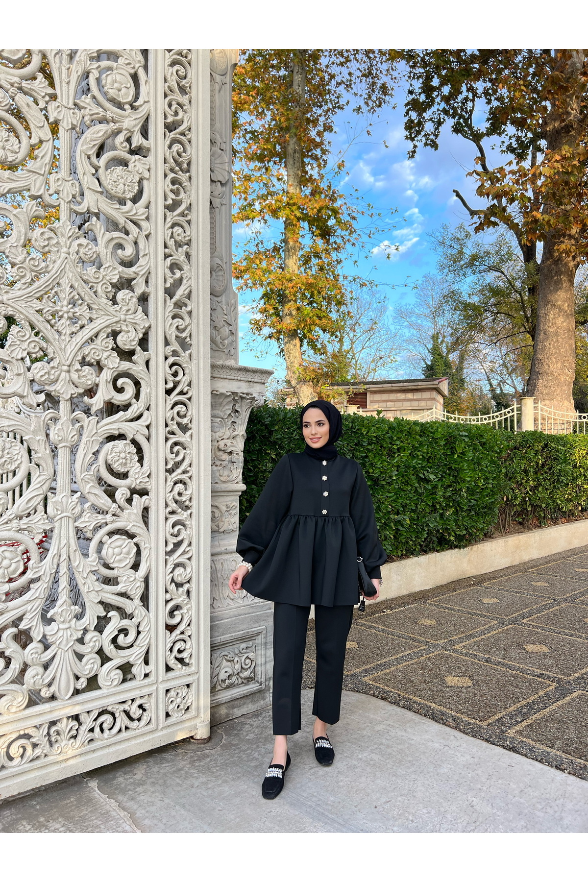 Taşlı Scuba Tunik Pantolon Tesettür Takım Siyah, tesettür modasının en sevilen parçalarından. Vücut hatlarını gizleyen rahat kesimi, yumuşak dokusu ve özenli dikişleriyle konfor ve şıklığı bir arada sunar. Düğün, nişan, bayram veya günlük kullanım için ideal. Genel Markalar güvencesiyle sunulmaktadır.