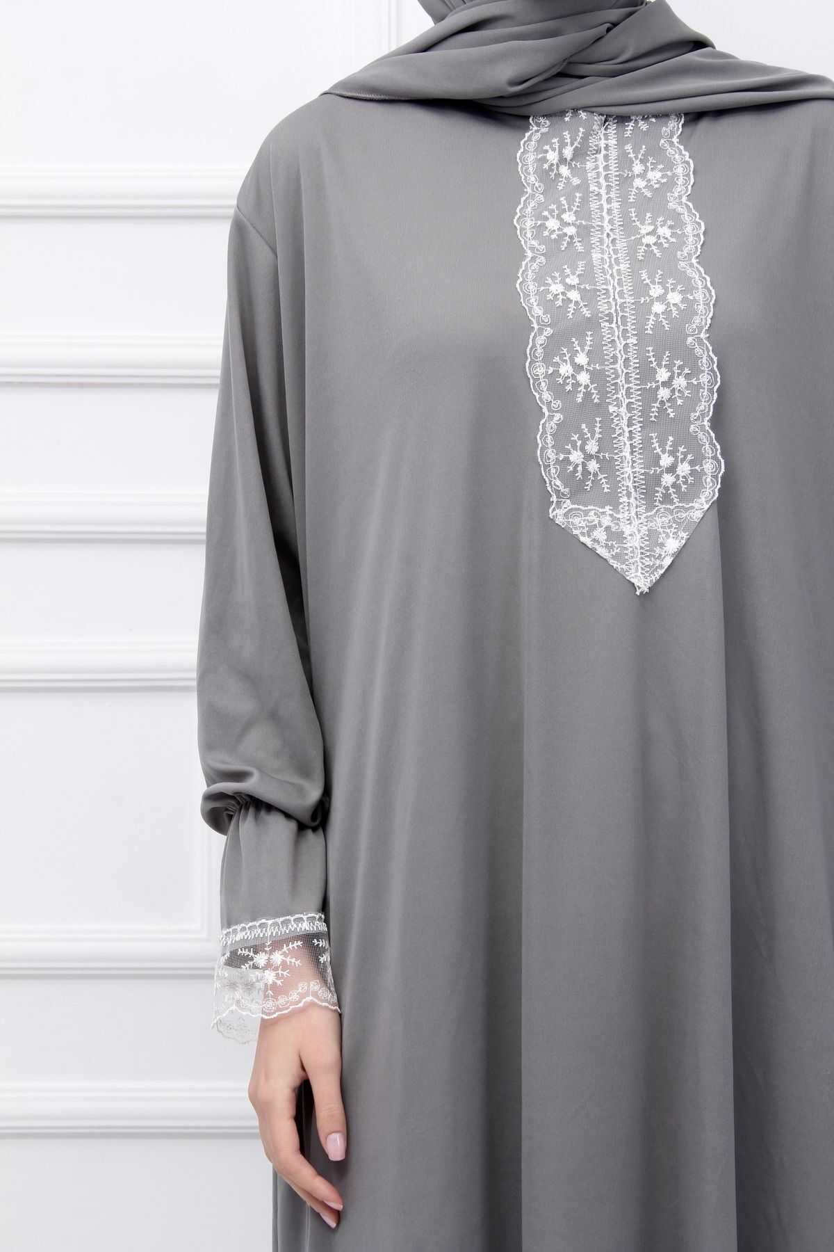 Tek Parça Başörtülü Dantelli Kadın Mevsimlik Namaz Elbisesi, Kıyafeti, Dökümlü Ferace, modern çizgileri ve sofistike detaylarıyla gardırobunuzun vazgeçilmezi olacak. Özenle seçilmiş kumaşı vücutta rahat durur ve hareket özgürlüğü sağlar. Farklı kombinlerle hem günlük hem de davet stilinizi oluşturabilirsiniz. Kutay Collection güvencesiyle sunulmaktadır.