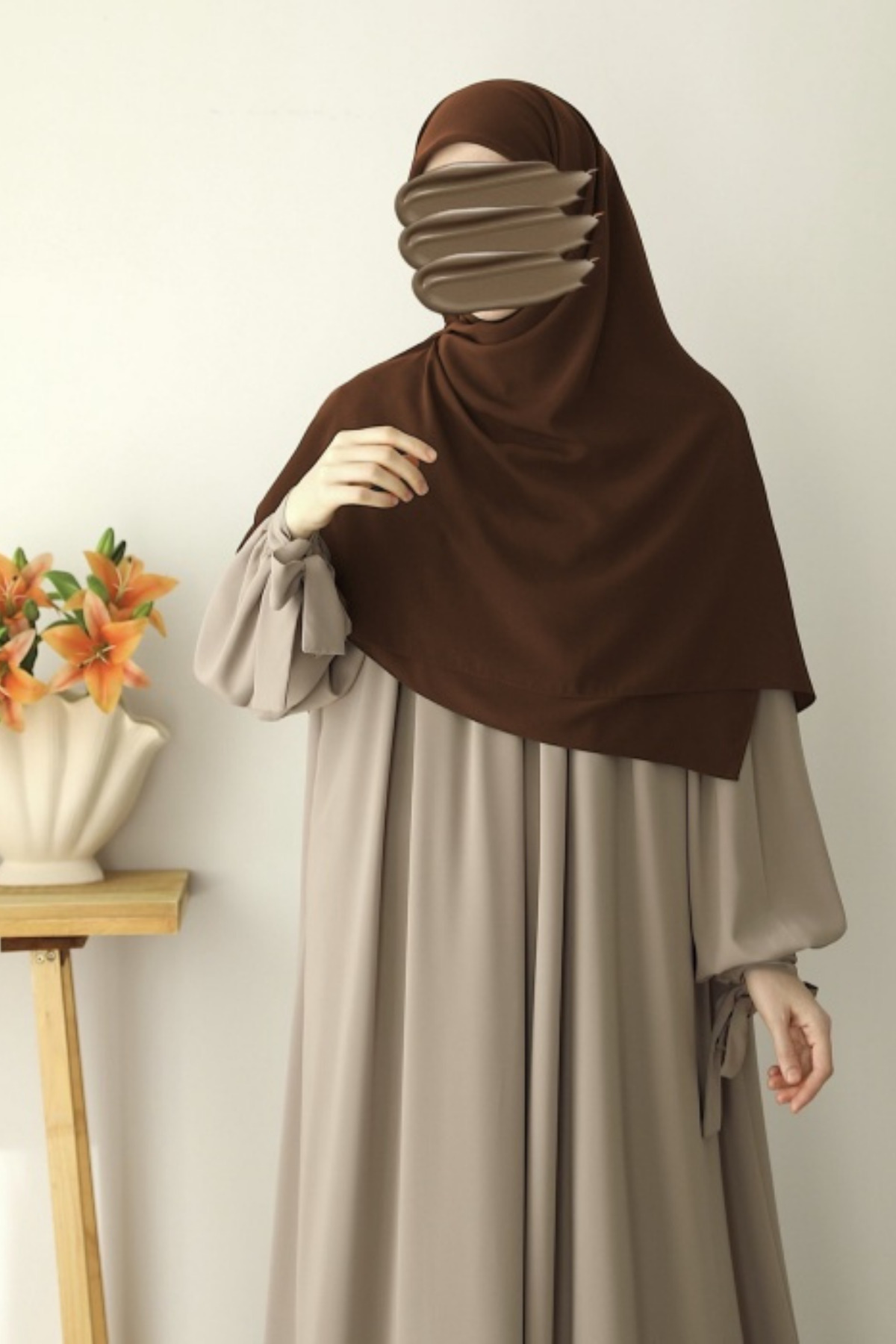 rengi çok güzel tam acı kahve,ama kumaşı kaliteli bir Medine ipeği değil