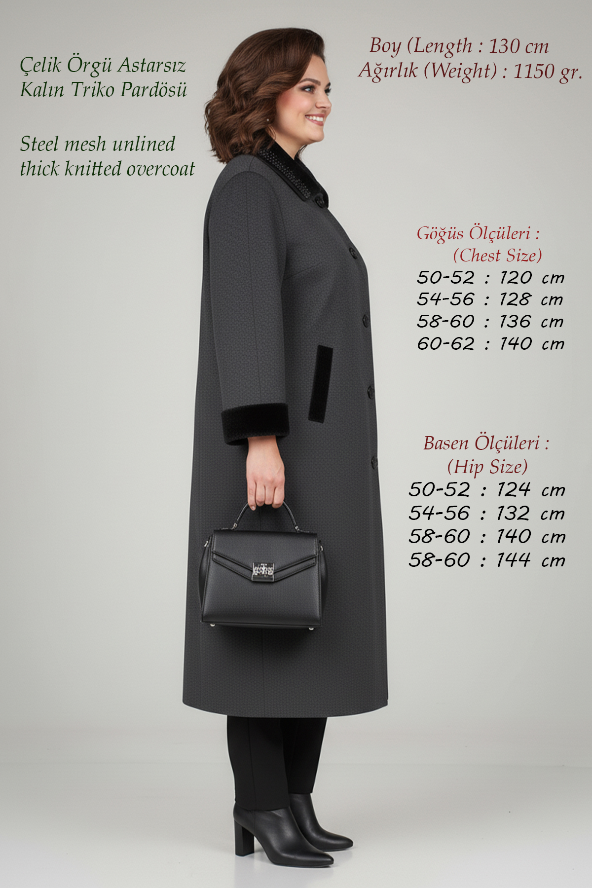 Triko Kadın Çelik Örgü Çok Kalın Tesettür Pardösü Anne Antrasit Kışlık Uzun Hırka, modern çizgileri ve sofistike detaylarıyla gardırobunuzun vazgeçilmezi olacak. Özenle seçilmiş kumaşı vücutta rahat durur ve hareket özgürlüğü sağlar. Farklı kombinlerle hem günlük hem de davet stilinizi oluşturabilirsiniz. Laden güvencesiyle sunulmaktadır.