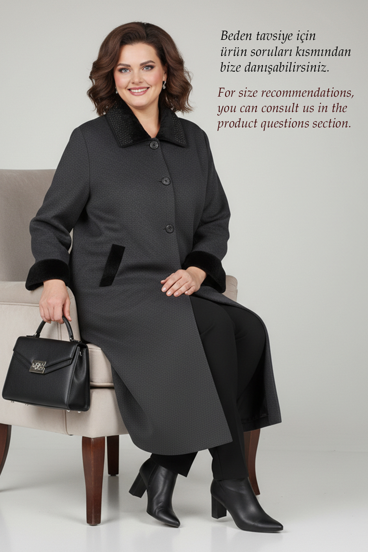 satıcı ya çokkk teşekkür ederim.vucut ölçülerine göre en uygun bedeni ve ürünü yazdı ve muhteşem bi ürün geldi.çok beğendim.sanki benim için dikilmiş.orta kalınlıkta ama giydiğin an sıcacık,rengi çok tatlı,kesimi güzel .sadece cepleri biraz daha yanda ve derin olsaydı daha iyi olurmuş Ben çok beğendim.ALLAH razı olsun.