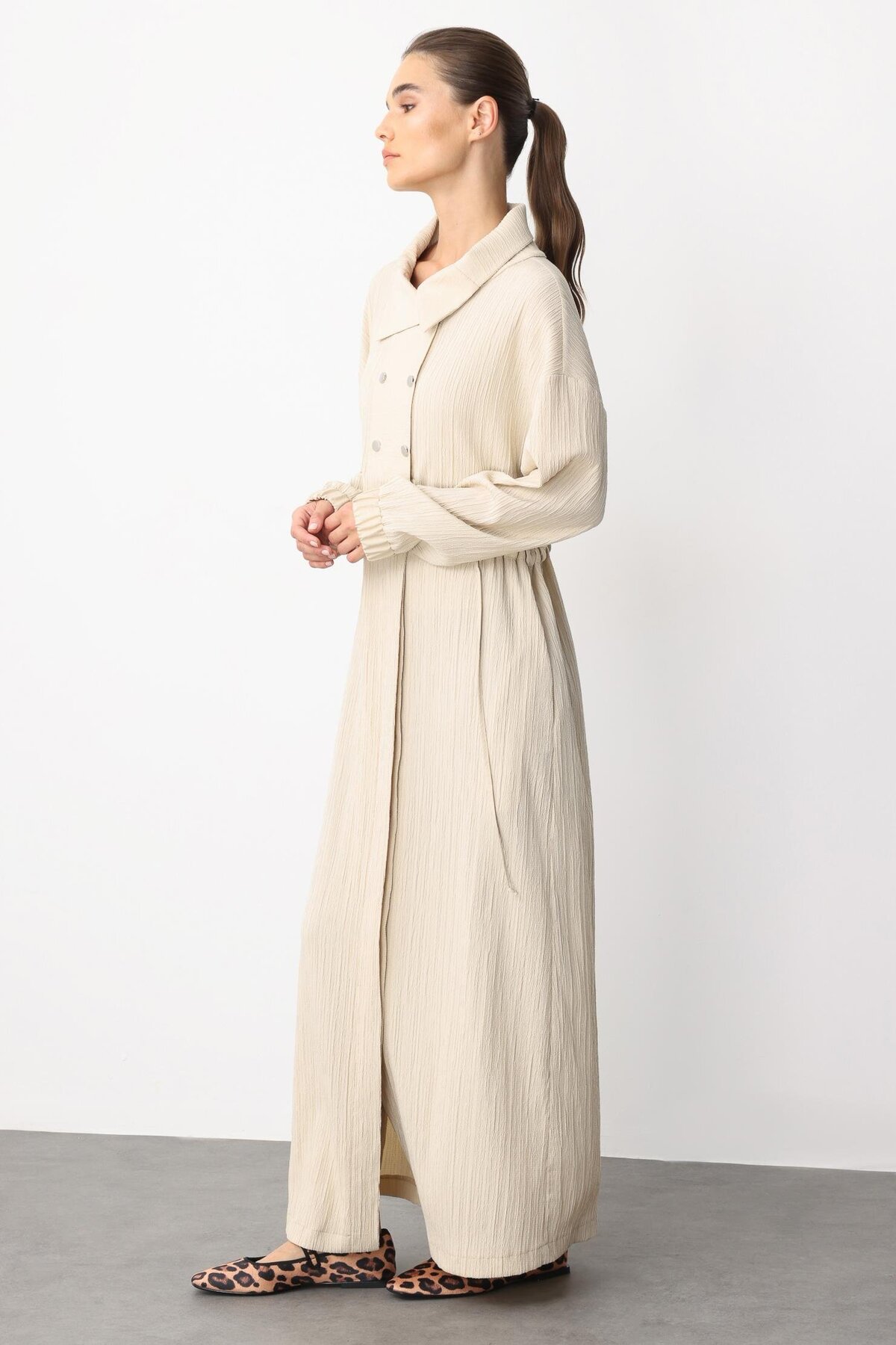 Y Yaka Ply-Cupra Garni Detaylı Spor Elbise Kap Ferace-Bej, tesettür modasının en sevilen parçalarından. Vücut hatlarını gizleyen rahat kesimi, yumuşak dokusu ve özenli dikişleriyle konfor ve şıklığı bir arada sunar. Düğün, nişan, bayram veya günlük kullanım için ideal. Micca güvencesiyle sunulmaktadır.